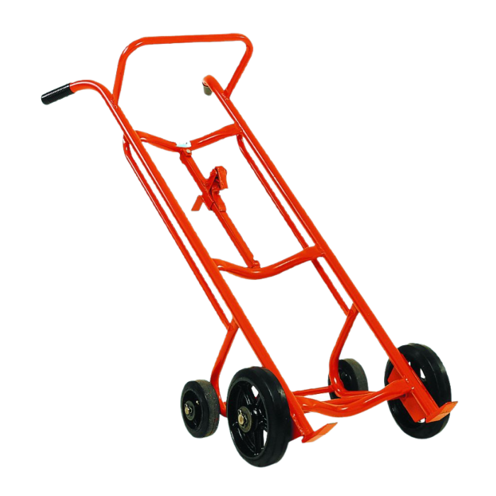 The Tandem drum truck is a heavy duty 4 wheel drum truck, ideal for loading and unloading 28 inch to 40 inch steel or fiber drums on or off a pallet. It features a 1 inch diameter handle that straddles a husky 1 1/4 inch diameter steel tube frame for added control and leverage.