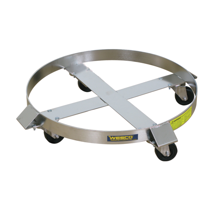 55 Gallon Stainless Steel Drum Dolly, Rubber Wheels - 1000 lb. Capacity