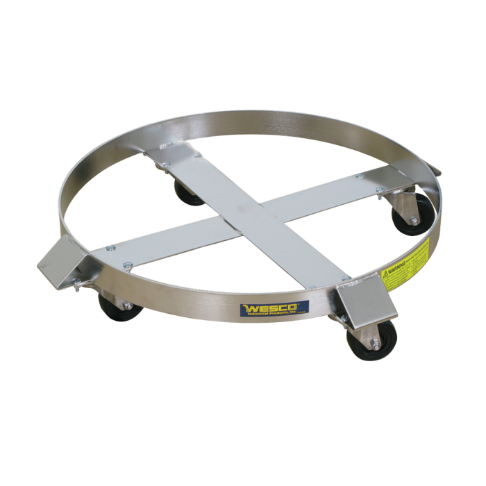 55 Gallon Stainless Steel Drum Dolly, Rubber Wheels - 900 lb. Capacity
