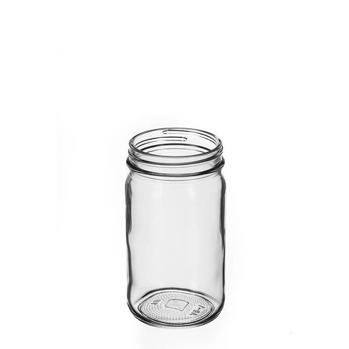 - Clear glass 8 oz wide mouth jars have a 58-400 mm neck finish