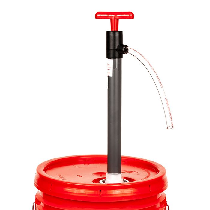 The durable PVC construction has Viton® valves and seals for chemical resistance. It handles alkalis, detergents and waxes. The maintenance pump has a 12 inch housing with an 18 inch dip tube to reach the bottom of the container. The discharge hose is 9 inches. The flow rate is 5 ounces per stroke.