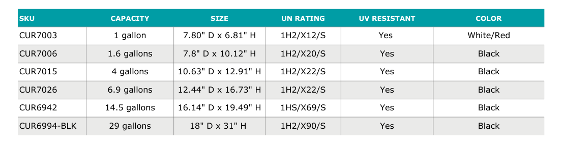 CurTec drums prevent degradation of their contents by UV light. Prepared to hold even the most sensitive products, these revolutionary containers protect against moisture, contamination, and tampering. CurTec drums are also equipped with UN ratings, and they're composed of FDA compliant materials, allowing you to safely ship, store, and transport hazardous materials as well as pharmceuticals or food products.