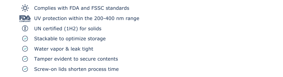 In a wide range of sizes, with top-notch product protection, CurTec DRUMS are perfect containers for almost any product. Not only are these drums easy to fill with their wide mouth openings, but they're also easy to seal. Each CurTec drum comes equipped with a twist-on lid, allowing you to easily get a tight seal and a calming peae of mind every time you close them.