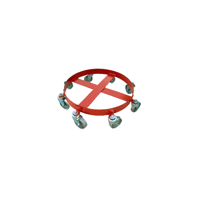 This 8 wheel drum dolly has a unique design that features eight casters for smoothly transporting your load. The 8 wheel dolly with ultra heavy-duty welded steel frame and durable orange painted enamel finish fits a 55 gallon drum. Equipped with eight, 4 inch x 2 inch steel swivel casters.